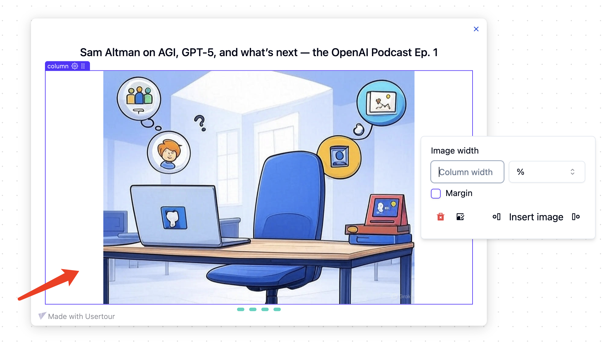 Skip to main contentWith Usertour, you can easily embed any web content directly into your flows. This includes videos, forms, images, documentation, and more.