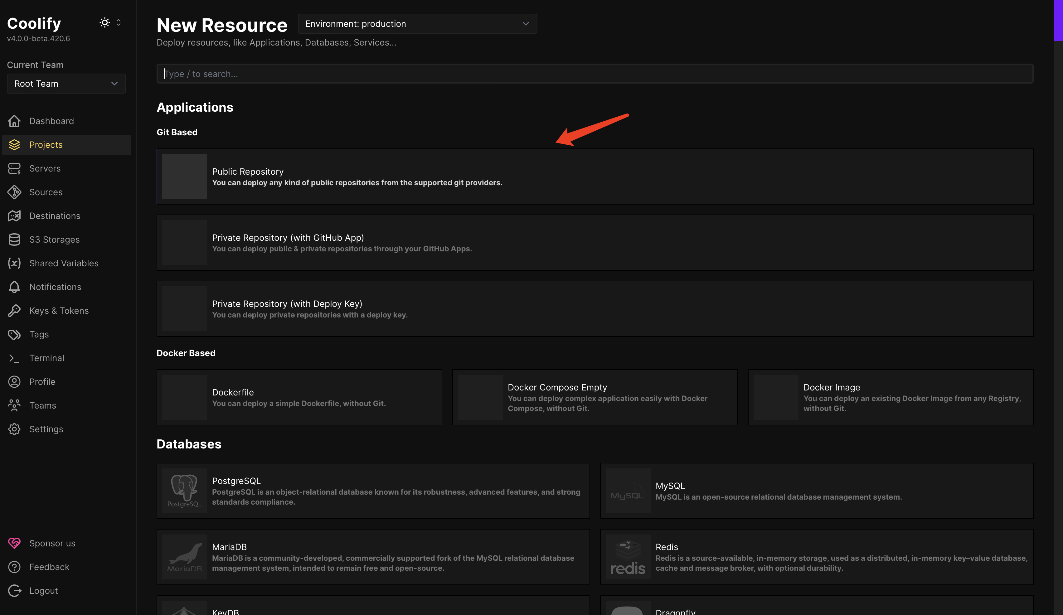Create a New Resource in Coolify