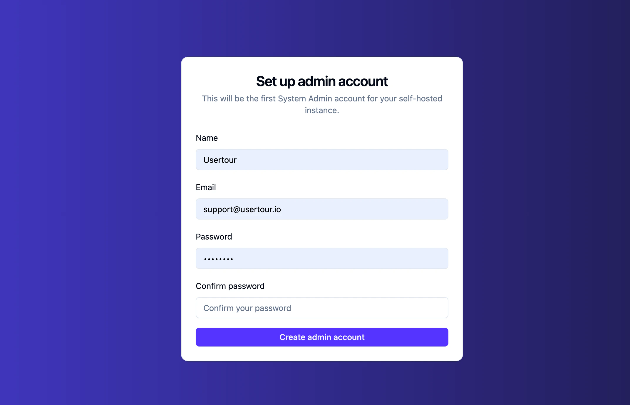 On a fresh self-hosted deployment, the first person who opens the site will be asked to set up the first admin account.